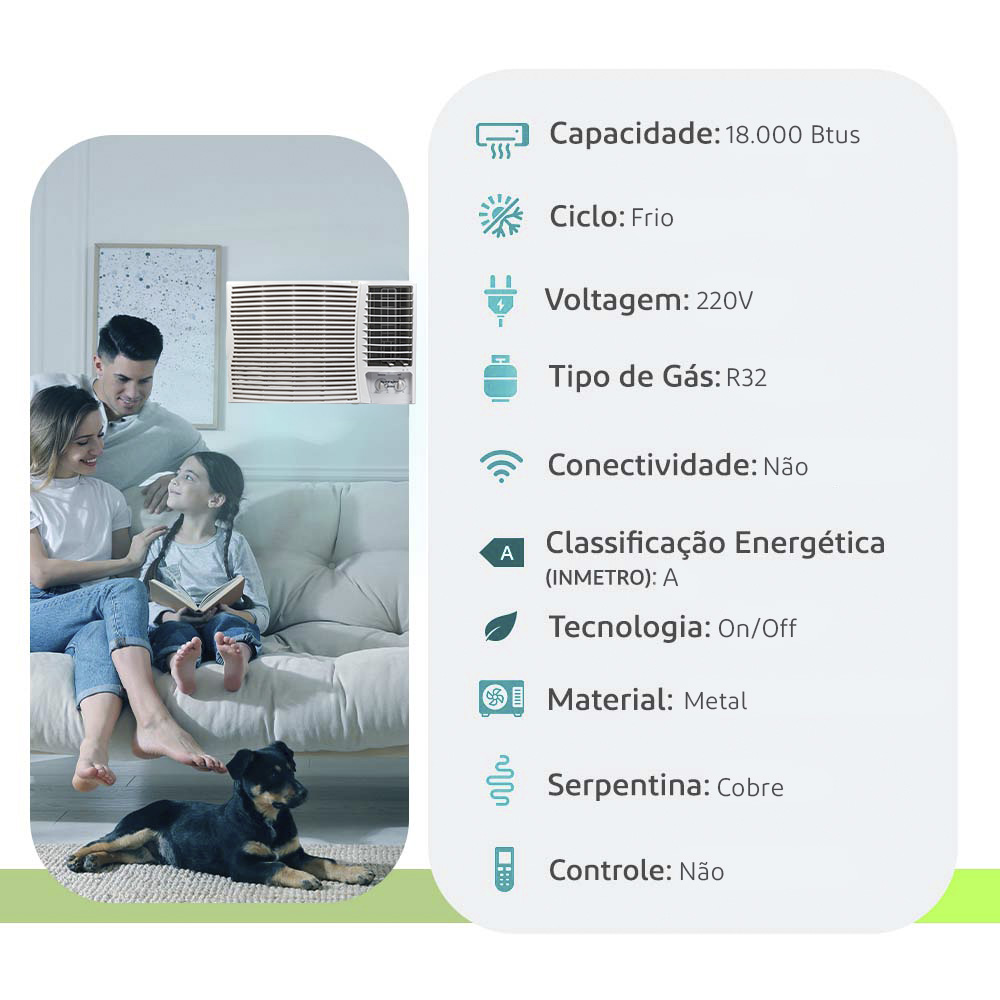| Capacidade | 18.000 BTUs |
