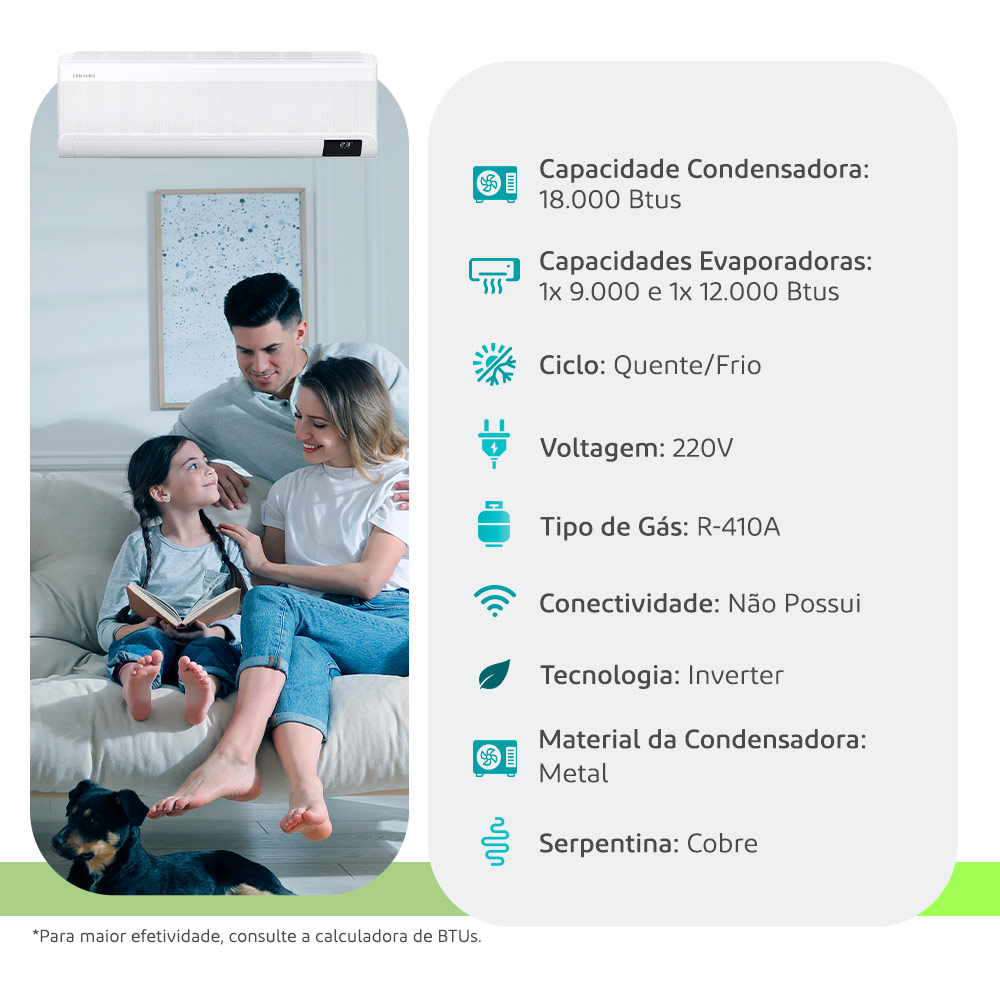 Ar Condicionado Multi Split Inverter Windfree Samsung 18.000 BTUs (1 Evap 9.000 e 1 Evap 12.000) Quente/Frio 220V Monofásico