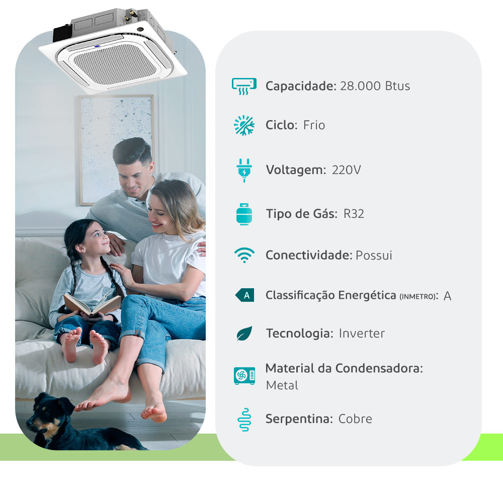 Ar Condicionado Split Cassete 4 Vias - Inverter R-32 - Carrier - 28.000 BTUs - Frio - 220V Monofásico