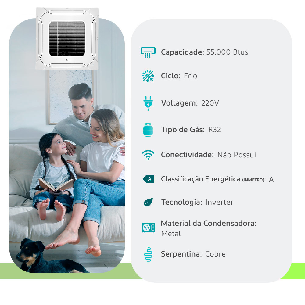 Ar Condicionado Split Cassete 4 Vias - Inverter R-32 - LG - 55.000 BTUs - Frio - 220V Monofásico