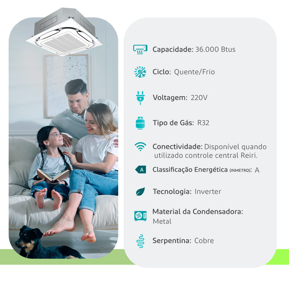 Ar Condicionado Split Cassete 4 Vias - Inverter R-32 - Sky Air - 35.000 BTUs - Daikin - Quente/Frio - 220V Monofásico