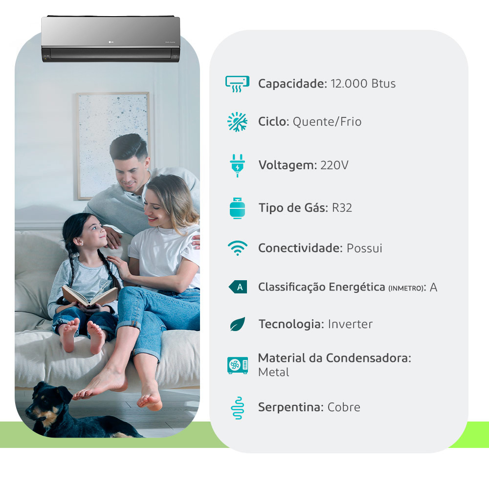 | Modelo/Descrição | Ar-Condicionado LG DUAL Inverter AI Artcool 12.000 BTU Quente/Frio 220V |