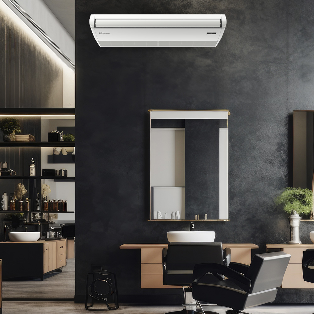 O modelo Piso Teto Electrolux oferece flexibilidade total na instalação, podendo ser fixado tanto no teto quanto no piso, de acordo com a necessidade do seu espaço.