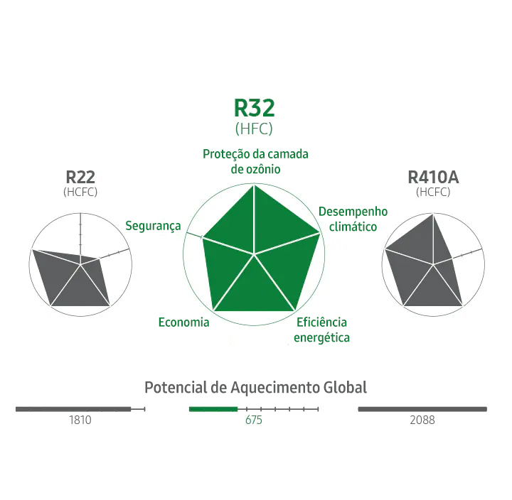Este ar-condicionado utiliza o gás refrigerante R32 de última geração, que tem um baixo impacto no aquecimento global e ajuda a reduzir o efeito estufa em comparação com os refrigerantes convencionais. Além disso, sua serpentina de cobre com tratamento Durafin Ultra oferece maior resistência à corrosão, garantindo durabilidade e sustentabilidade a longo prazo.