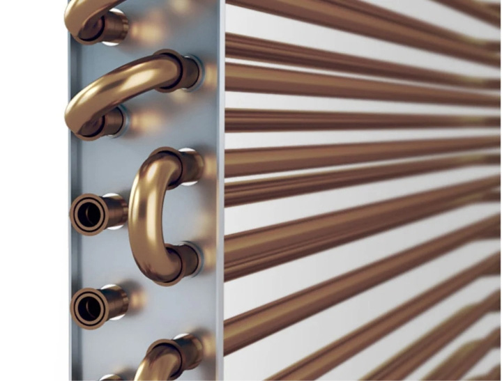A serpentina de cobre com acabamento anticorrosão Durafin Ultra™. Maior resistência a corrosão, oxidação e erosão, até em ambientes mais extremos como maresia.